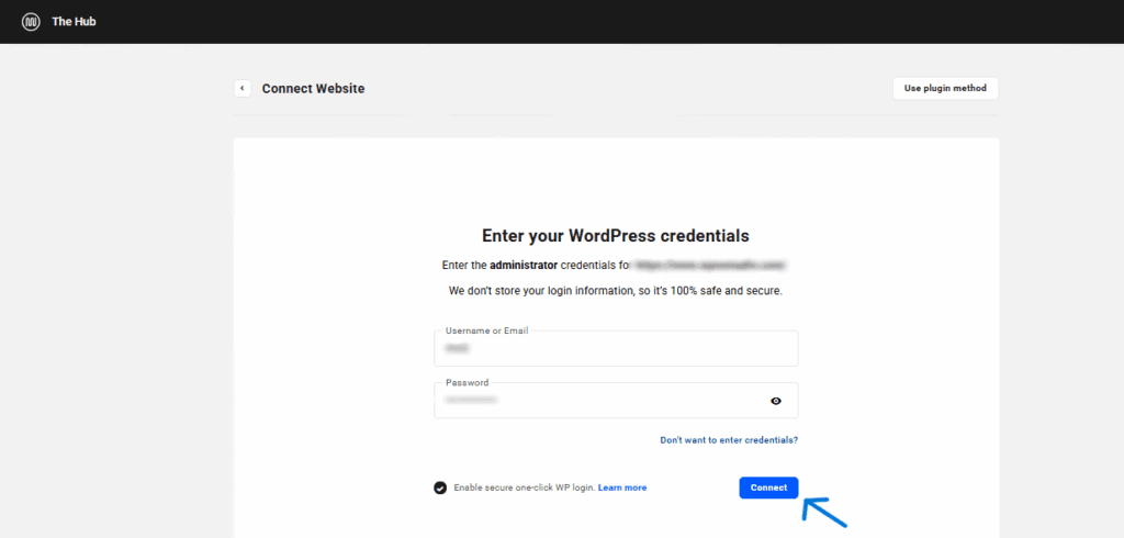 Then you’ll need to provide WordPress Admin Credentials to successfully connect with your Dashboard.