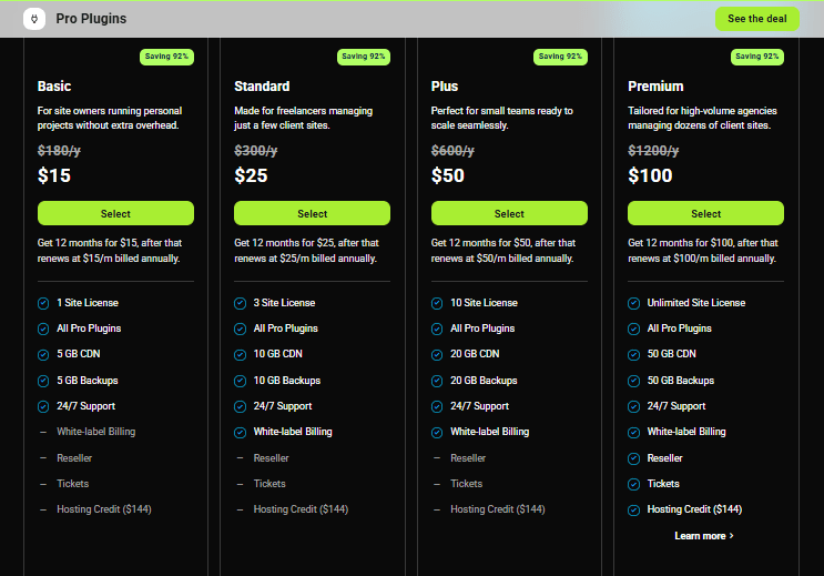 They offer an extensive selection of Pro Plugins, all at a cost that is both affordable and reasonable for users.
