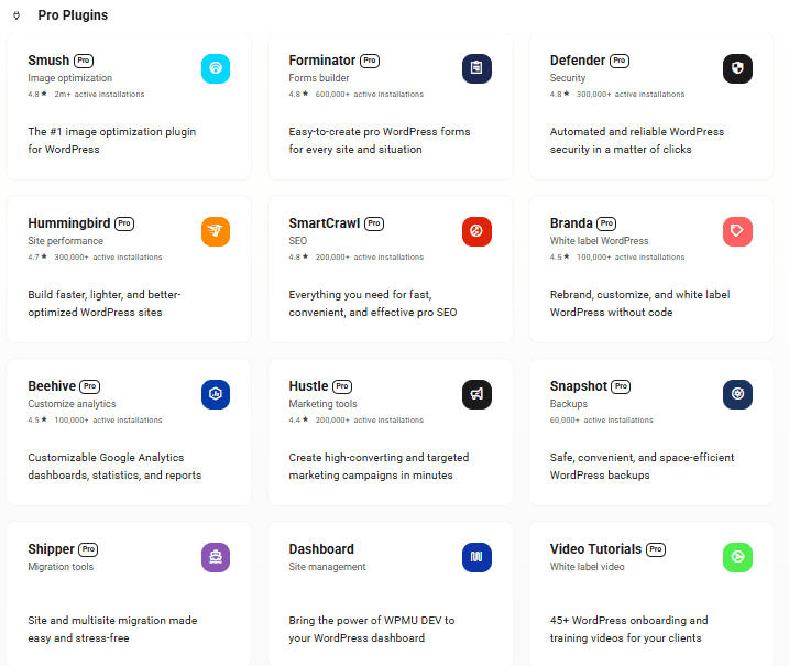 Here’s a quick glimpse of the pro plugins offered by WPMU DEV: