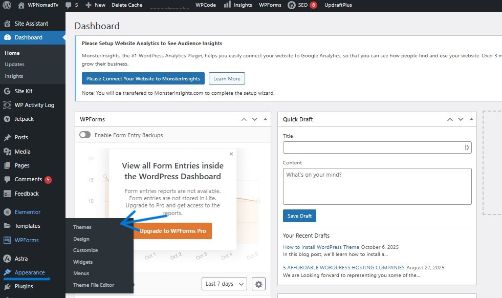 Log in to your WordPress dashboard by entering your credentials, then look for the Appearance button located on the left-hand side panel of the screen. This button allows you to customize the look and feel of your website.