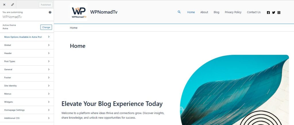 After you’ve made changes and customized the theme, hit the Publish button to make it live. The viewers can then view the new changes you’ve made.